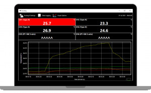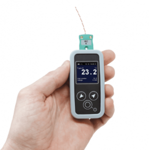 Excelog One logs data from a single thermocouple but can also operate as a thermocouple simulator for calibration checks.