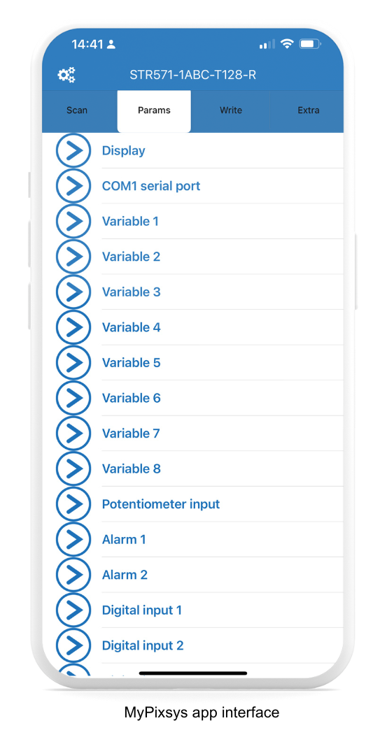 The STR571 can be configured via a mobile phone using the free MyPixsys app, through the MyPixsysLab PC software, or manually using the front push-buttons.