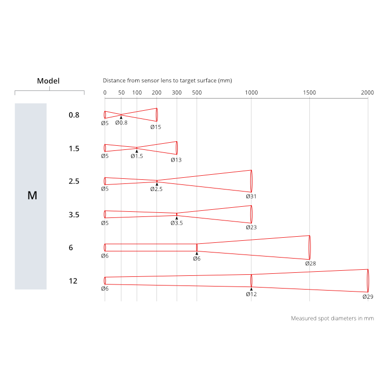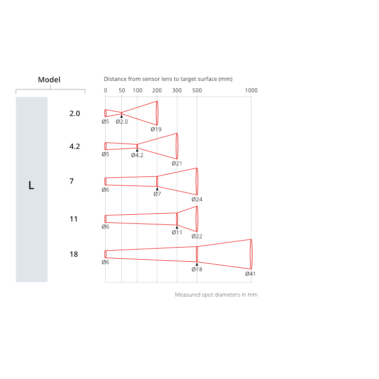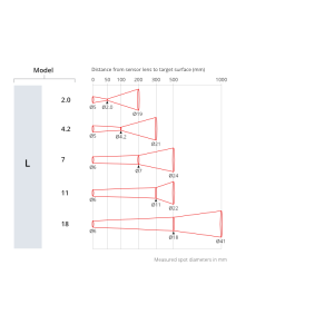 The given measured spot size contains 90% of the energy detected by the sensor. We normally recommend the target is at least twice as large as the given measured spot for maximum accuracy.