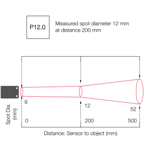 12 mm at distance 200 mm; varies depending on measurement distance (see Field of View Diagrams below)