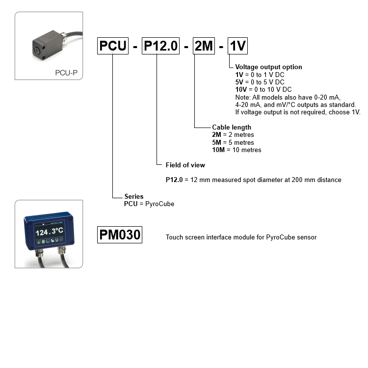 The PyroCube P sensor may be ordered with or without the PM030 touch screen interface.