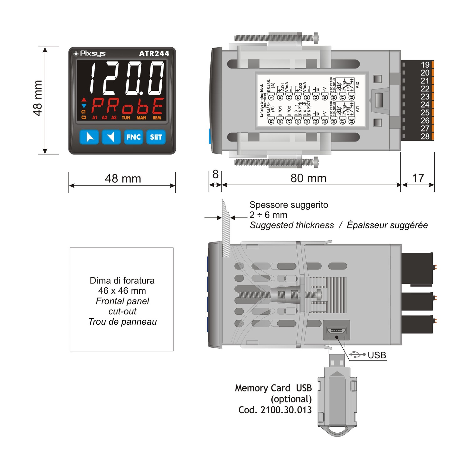 Password-protected parameters, optional memory card for repeat configurations, PC software, NFC configuration via MyPixsys app for Android smartphones